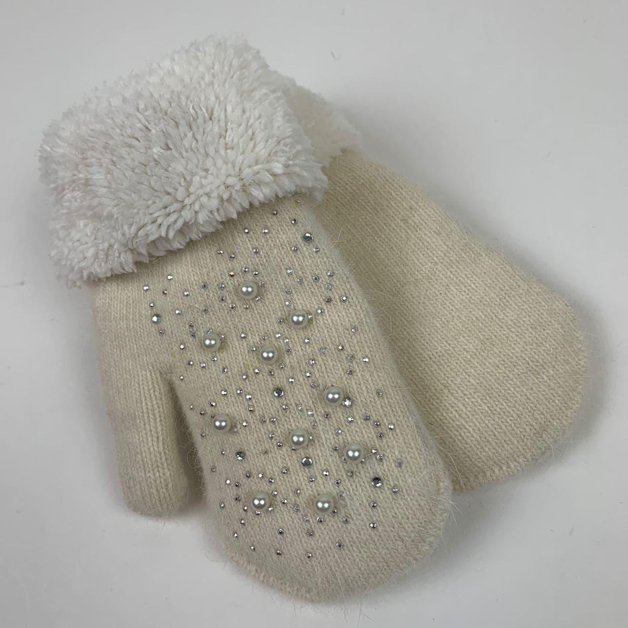 Рукавиці дитячі подвійні зі стразами та намистинами, ТМ Корона, на 6-10 років, білий, Е05301-7
