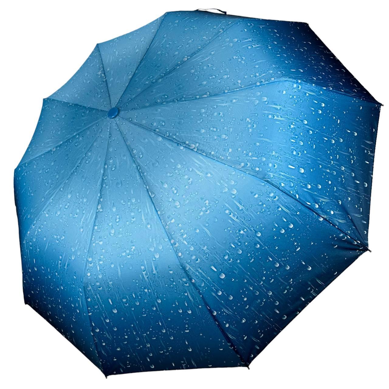Жіноча парасолька напівавтомат із принтом крапель від Bellissimo, антивітер, блакитний М0627-5