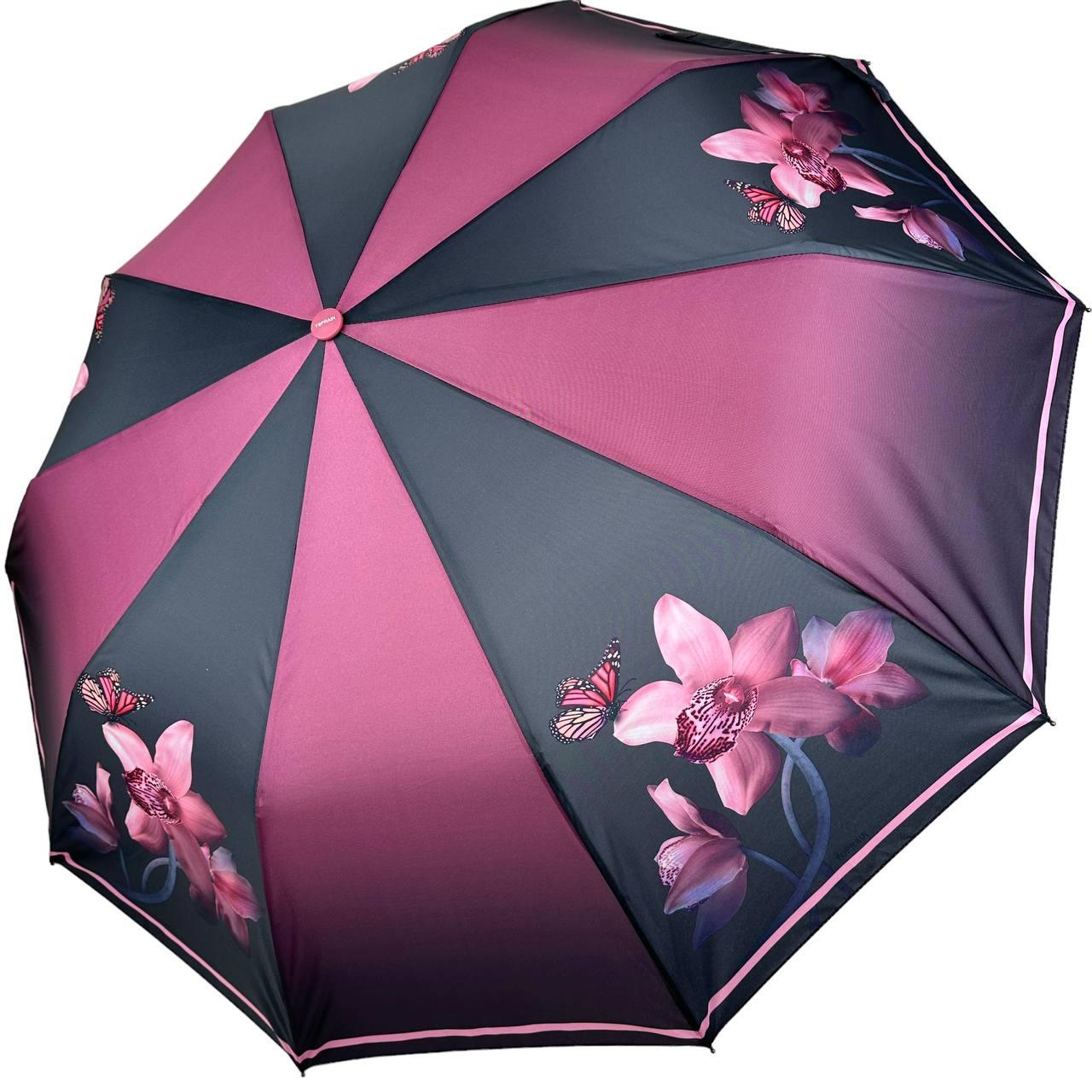 Жіноча складана парасолька напівавтомат на 10 спиць від Toprain з принтом "Гармонія", рожевий, 0622-3