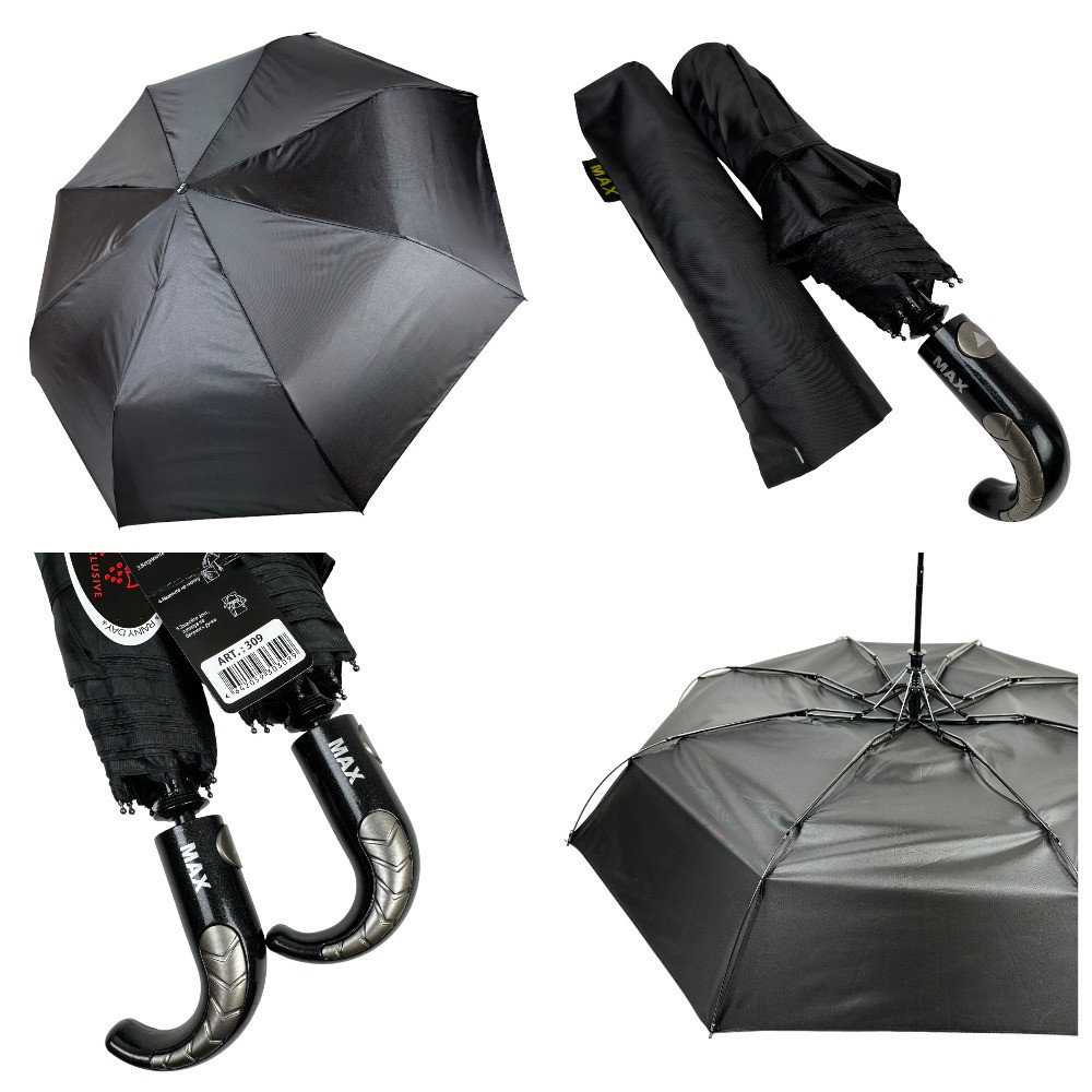 Оптом Чоловіча складна парасоля напівавтомат на 8 спиць з ручкою напівгак від Max, є антивітер, чорний, 309