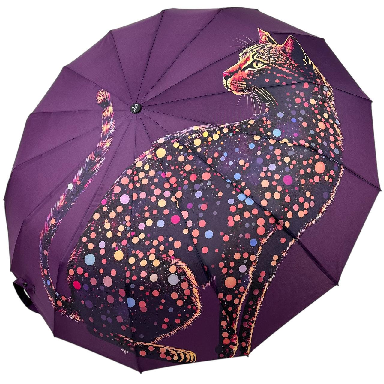 Жіноча парасолька автомат на 14 спиць від Три Слона із зображенням великої кішки, фіолетовий, N 0272-3